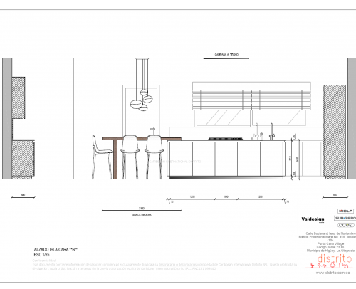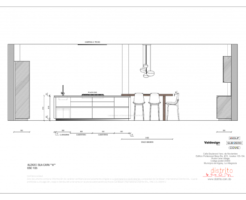 Planos tecnicos para cocina realizada en residencia de Punta Cana.